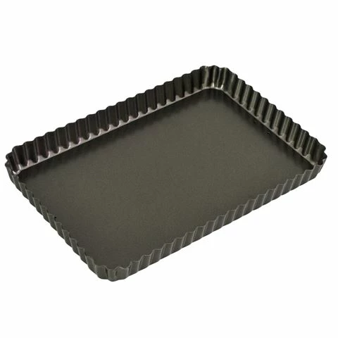 A premium fluted rectangular tin ideal for making quiches, tarts and flans. Made from heavy duty carbon steel, it features a double non-stick coating and loose base for easy release.