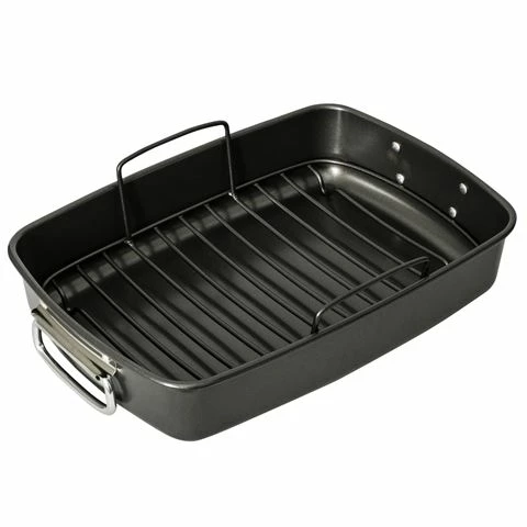 A premium non-stick roasting pan with removeable rack ideal for roasting meat, poultry, vegetables and making gravy. Made from heavy duty carbon steel, it features a double non-stick coating and riveted side handles for easy handling.