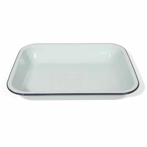This very generous 31cm Bake Pan is ideal for roasting meats and deep enough for lasagne. The Bake Pan has a duck egg blue colour finish, with a fashionable grey rim. Get ready to bake with Falcon.