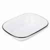 Enamel is distinct – especially if it’s Falcon enamelware. Since the 1920s, Falcon has filled British homes and kitchens with its pure white enamel bowls, tumblers and baking dishes, all with their tell-tale royal blue rim. It looks the part, and it’s incredibly tough, as each piece is made by fusing porcelain onto heavy-gauge steel. If you drop it, it won’t break. It’s resistant to chemicals. You can put it in the oven, and you can use it on gas and electric hobs.
