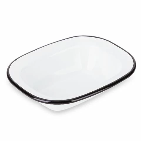 - Made from enamel – each piece is made by fusing porcelain onto heavy-gauge steel.