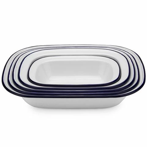 - Made from enamel – each piece is made by fusing porcelain onto heavy-gauge steel.