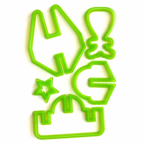 - Includes four cookies cutters that come together to create a 3D star fighter.